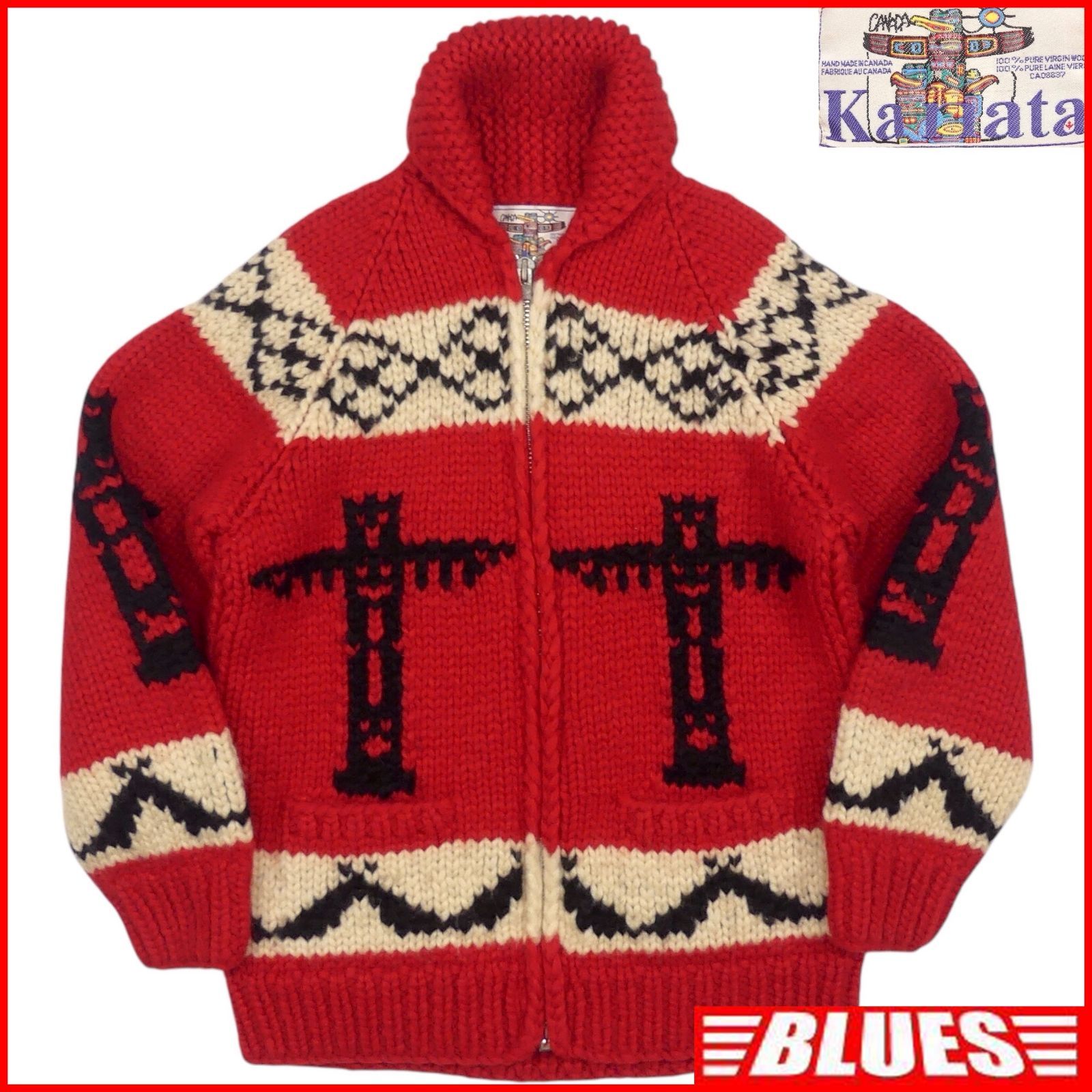 - メンズ > ジャケット・アウター > KANATA カナタ カウチンセーター 赤 アーガイル柄 トーテムポール 古着 KANATA カナタ カウチンセーター 赤 アーガイル柄 トーテムポール 古着