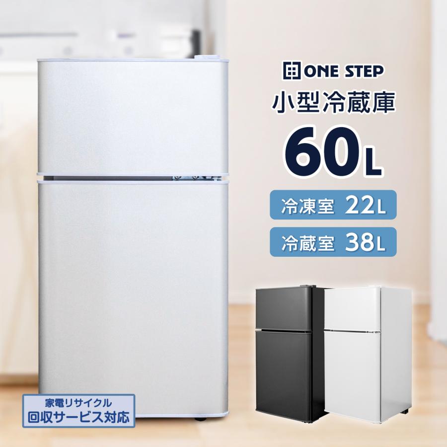 - 生活家電 > 冷蔵庫・冷凍庫 > 週末セール ! 冷蔵庫 冷凍冷蔵庫 2ドア 小型 家庭用 60L ブラック ONE STEP 冷蔵庫 一人暮らし 2ドア サイズ 冷凍冷蔵庫 小型 家庭用