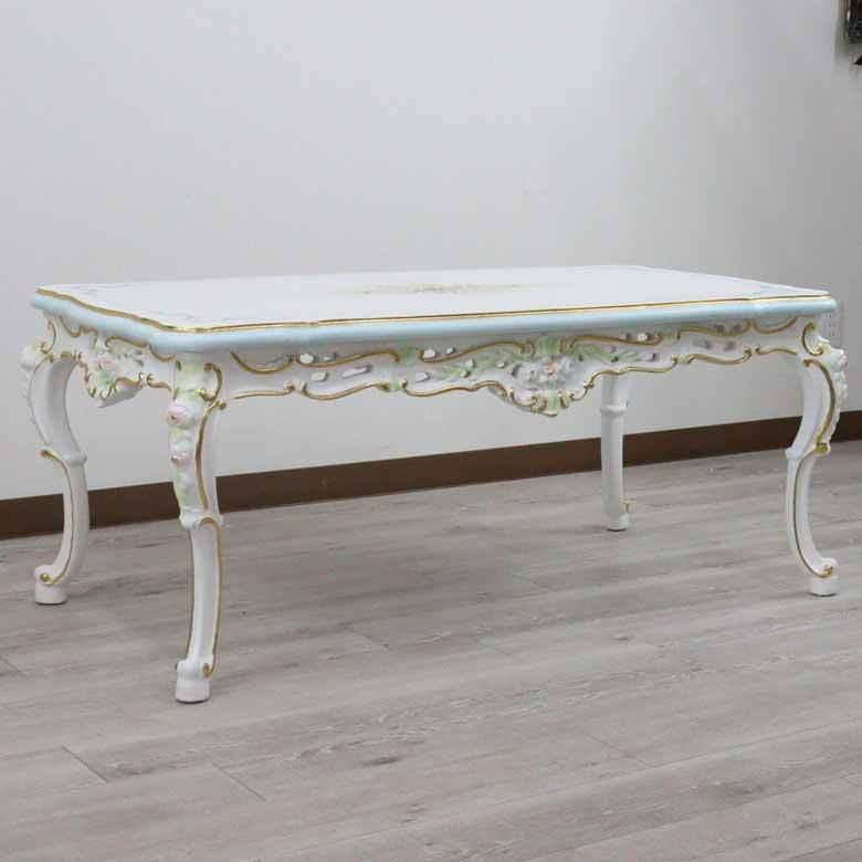 センターテーブル 120cm ロココ調 サイドテーブル 白家具 630-279 ロココ センターテーブル 120cm リビング カフェテーブル サロン