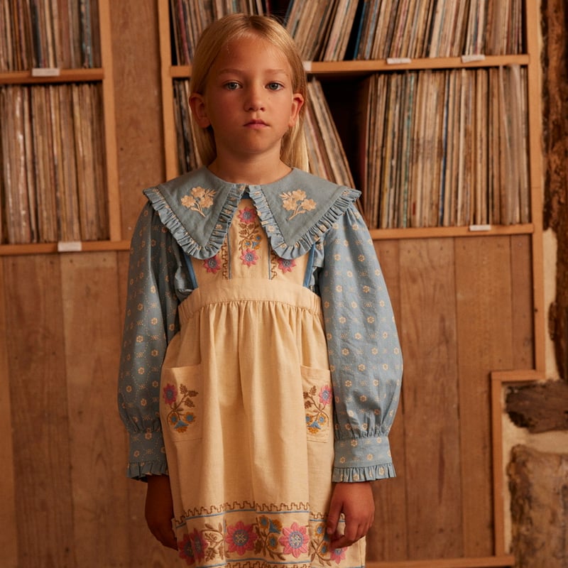 - キッズ服(100cm~) > ワンピース > ワンピース Apolina Ursina Embroidered Pinafore 5-7y Apolina URSINA EMBROIDERED PINAFORE - CASHEW |