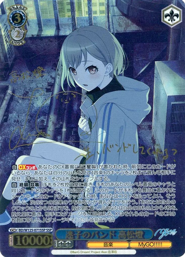 - トレーディングカード > ヴァイスシュヴァルツ > SSP 迷子のバンド 高松燈(羊宮妃那金箔押しサイン入り) WS SSP 迷子のバンド 高松燈(羊宮妃那金箔押しサイン入り) WS SSP