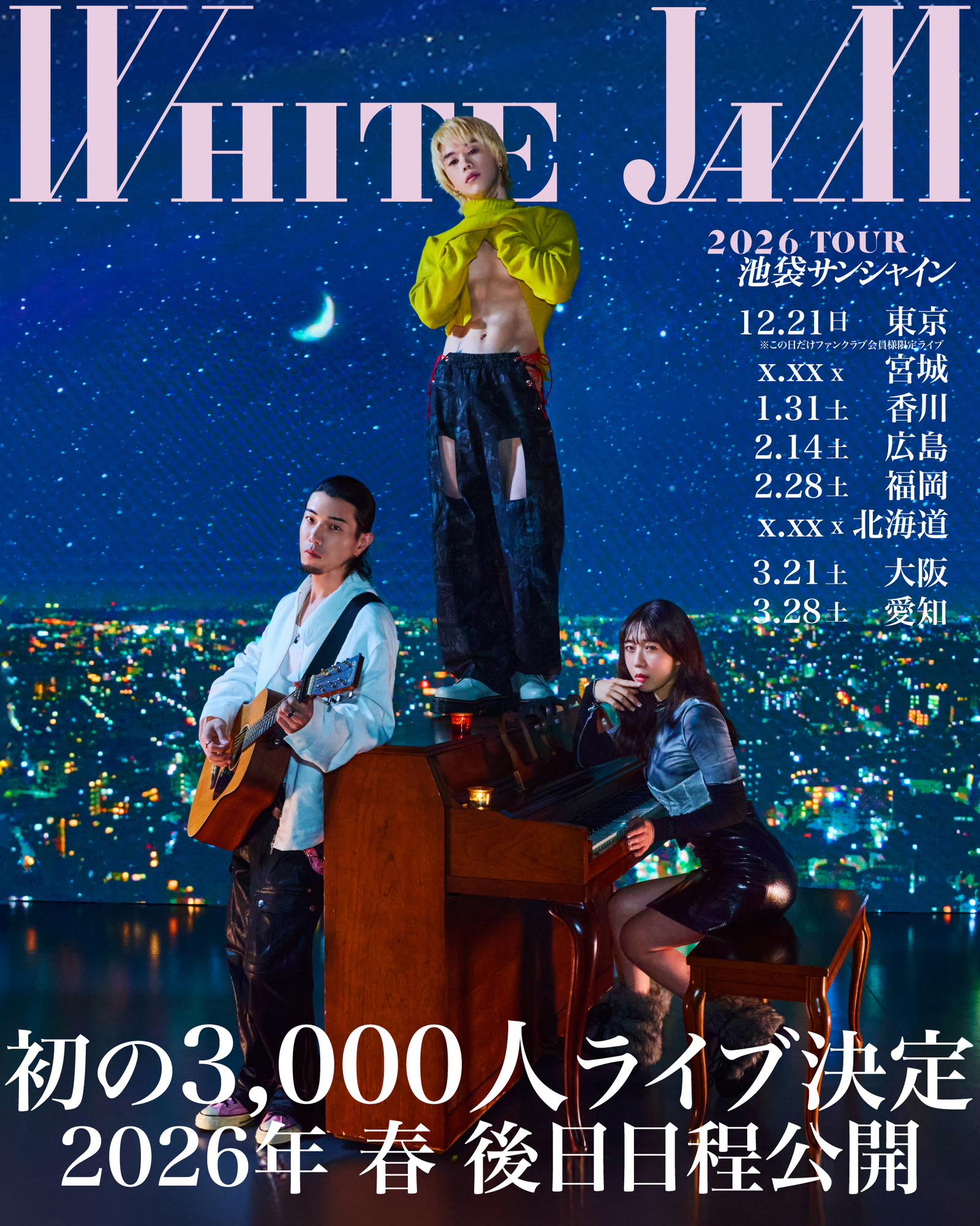 | 商品の特徴 | WHITE JAM 初の3000人ライブ決定! | WHITE JAM 公式ウェブサイト。WHITE JAM 3,000人ライブ決定 2026 Tour 東京 大阪 愛知 福岡 広島。If I were to go on a world tour, which song would you like me to。WHITE JAM New Album 2025 デザインを全公開しました(^O^) 全国発売。。9/20(土) WHITE JAM LINE CUBE SHIBUYA公演1列目チケットの特典確認のため、開封しましたが全て未使用即購入大歓迎送料、手数料等込みのため値下げ不可 | ||