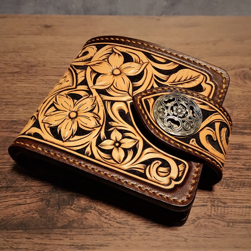 - ファッション小物 > 財布・ケース・小物入れ > レザークラフト カービング 二つ折り財布 ハーマンオーク・ツーリングレザー レザークラフト カービング 二つ折り財布 ハーマンオーク・ツーリング