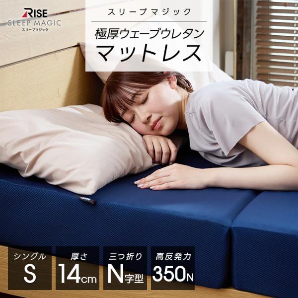 - ベッド・マットレス > マットレス > 三つ折り スリープマジック 極厚マットレス 14㎝ シングル ネイビー ライズ東京 極厚マットレス 14cm シングル スリープマジック 高反発 高