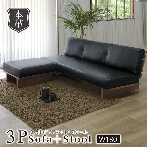 【2/5までの限定出品】本革/天然木 三人掛ソファ シギヤマ家具工業 シギヤマ家具工業 ソファ ソファー 3人掛け 幅180 3P スツール 本革 木