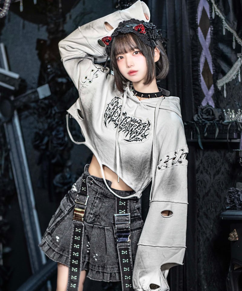 - レディース > トップス > イドラタールテオドール ダメージショート猫耳パーカー I.GRAY 再販《ダメージショート猫耳パーカー》I.GRAY | HIDOLATRAL THEODOL