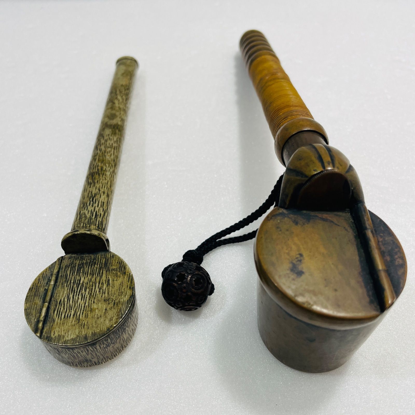 G–3 矢立 やだて 書道具 2個組 銅製 アンティーク 美術品 工芸品 和文具 G–3 矢立 やだて 書道具 2個組 銅製 アンティーク 美術品 工芸品 和