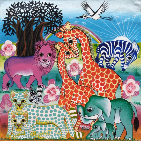 - 美術品・アンティーク・コレクション > 絵画 > ティンガティンガアート 動物の絵画 アフリカ絵画『 Animals / Rainbow 』ティンガティンガ by Raymond 20