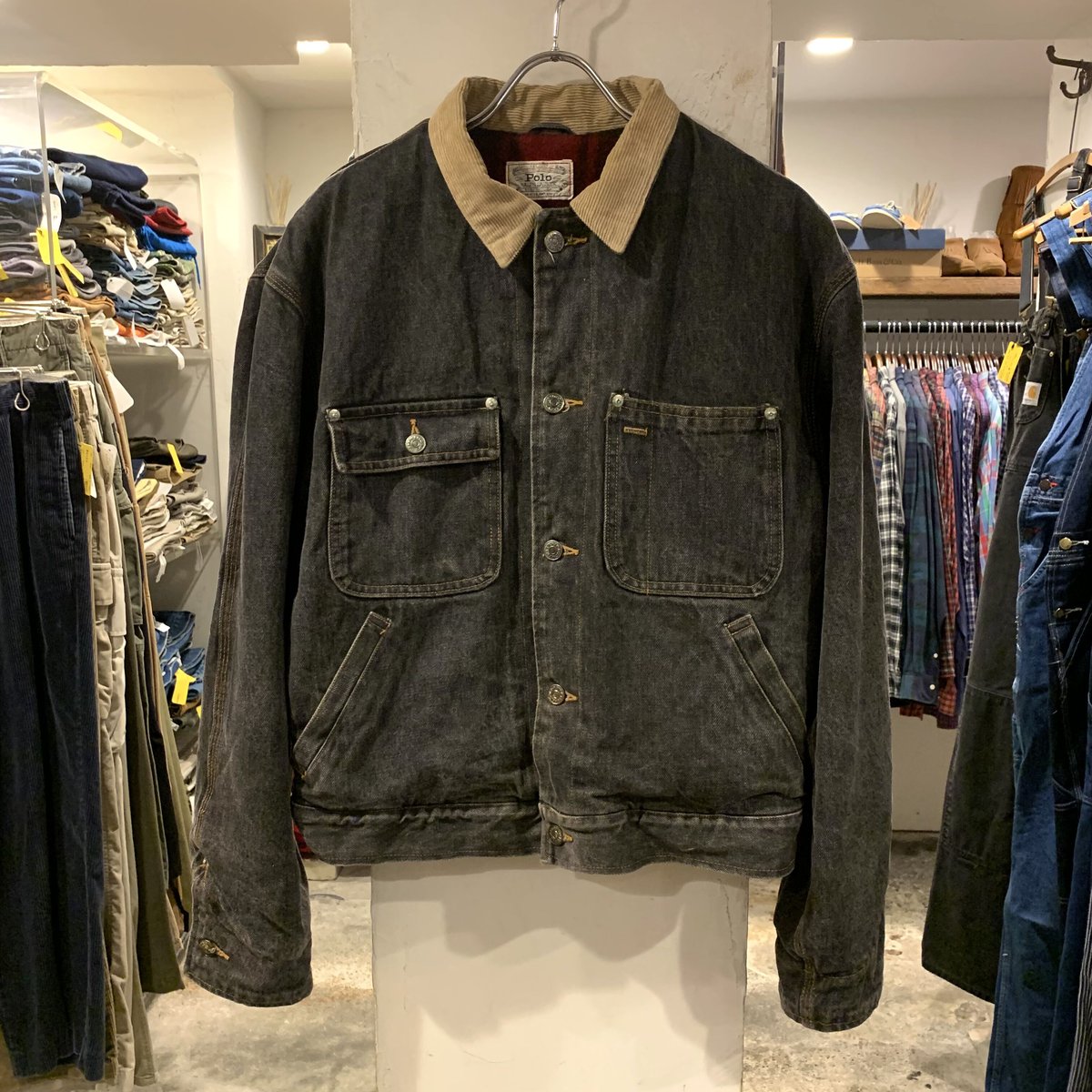 | 商品の特徴 | さ*る様 超レア 90s ラルフローレン RRL 白タグ 先染めブラック デニム。さ*る様 超レア 90s ラルフローレン RRL 白タグ 先染めブラック デニム。さ*る様 超レア 90s ラルフローレン RRL 白タグ 先染めブラック デニム。9f2699495070794b0ffdad5170cae1。告知9月中は少しずつ値下げしながら出品しますが、10月以降10月、11月、12月と毎月値上げしながら出品します※ハイシーズンに値段が上がるのは一般的かと思いますお値引き交渉も受け付けておりますがハイシーズンに突入すればするほど少額になりますご了承の程よろしくお願い申し上げます90sラルフローレン白タグ先染めブラック襟コーデュロイ90sラルフローレンの白タグこの先染めブラックのデニムジャケットはウルトラレアな個体です袖に少しダメージがありましたがヴィンテージショップで1万円かけて綺麗にリペア済この先染めブラックxコーデュロイx白タグ完璧です肩幅53身幅62着丈62袖丈60#freewheelers#フリーホイーラーズ#warehouse#ウエアハウス#リアルマッコイズ #バズリクソンズ#フェローズ #クッシュマン#フルカウント#ドゥニーム#ヴィンテージ#ビンテージ#レインボーカントリー#ザフュー#THEFEW#アメカジ#リーバイス#リー#ラングラー#RRL#ダブルアールエル。 | ||
