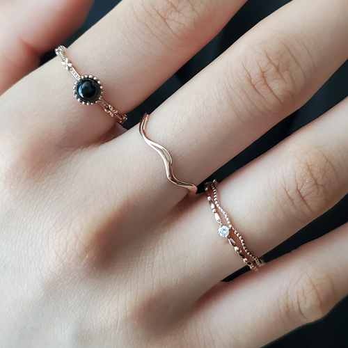 - レディース > アクセサリー > 天然石 ブラックオニキス 珍しいピンクゴールドとの組み合わせリング K18 9号 ピンクゴールド3点セットブラックオニキス女性のためのリング重ね付け