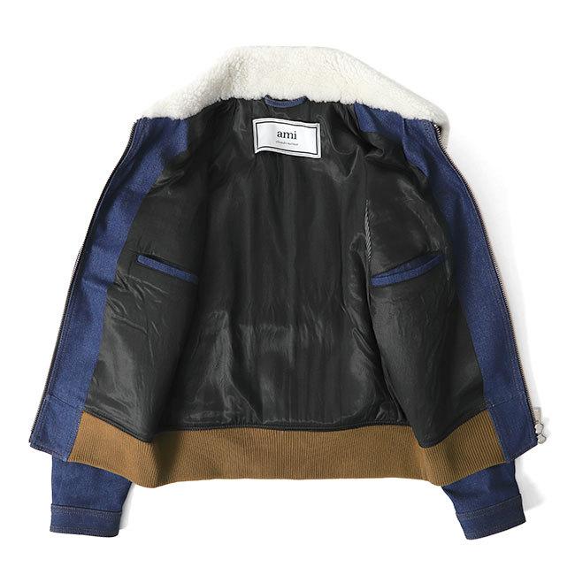 【新品】 ami paris デニムボアジャケット xs 黒 アミパリス AMI PARIS アミパリス 襟ボア デニムジャケット H18D410.600 Gジャン