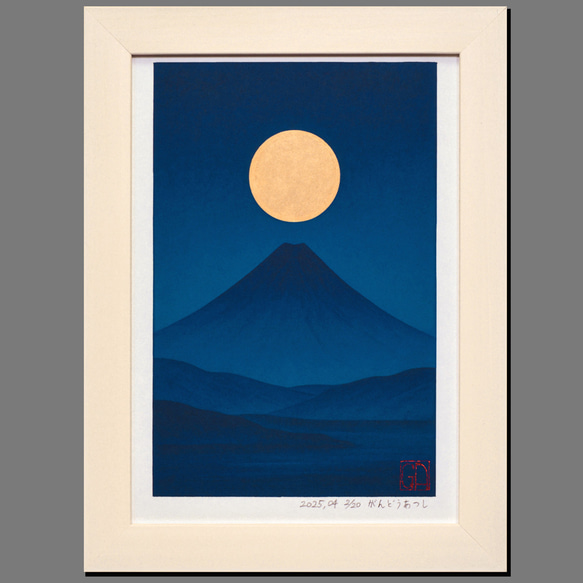 - 美術品・アンティーク・コレクション > 絵画 > 【専用出品】AIデジタルアート●『満月と夜の青富士』『桜富士』がんどうあつし作 静寂の青『満月と夜の富士山』○AIアート和紙20枚限定A4額装品がんどう