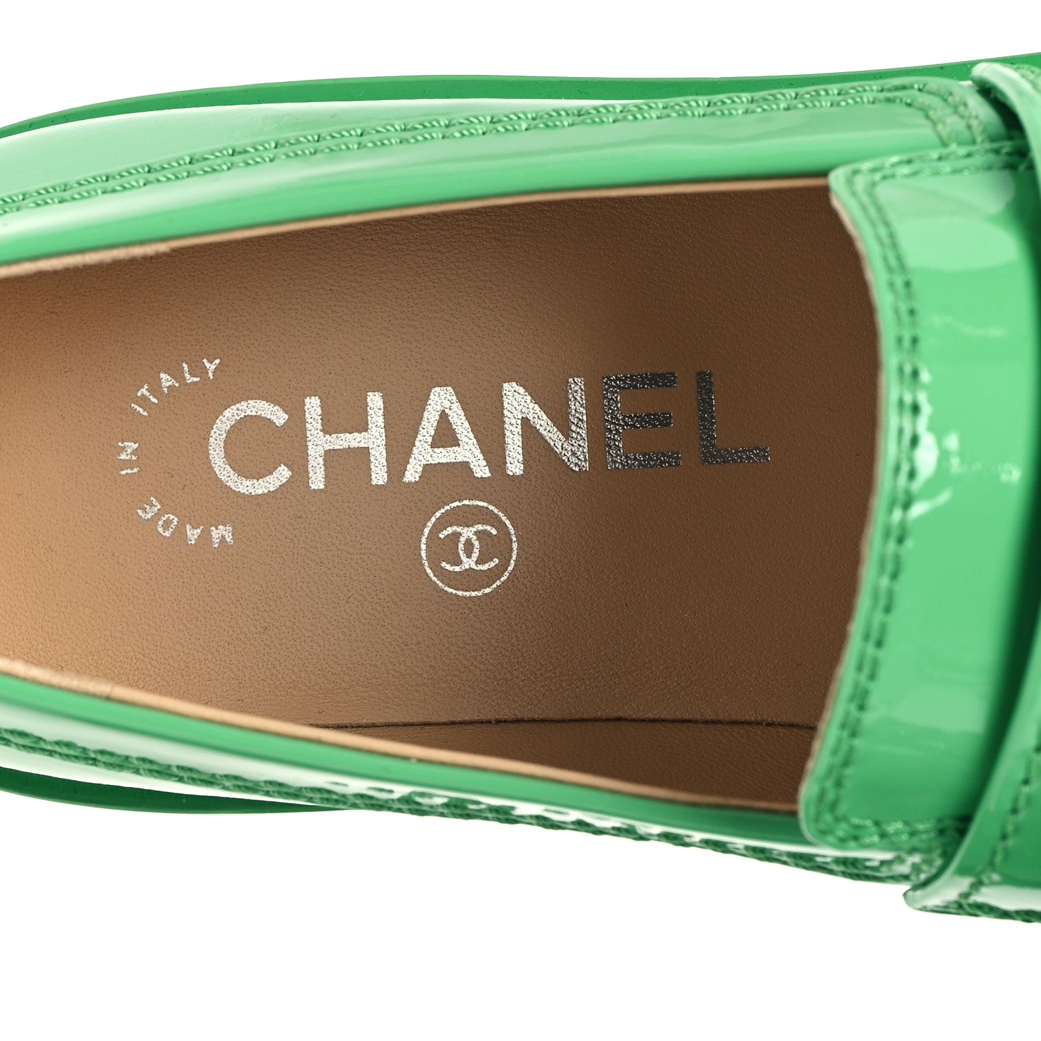 【シャネル】ローファー ココマーク エナメル 緑 グリーン 37.5 Chanel Patent Calfskin Logo Loafers 37 Green 1645486 – FASHIONPHILE