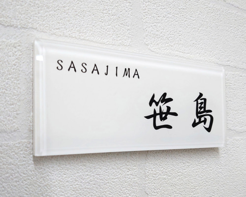 | メーカー | だいちゃん*白背景シルバーローマ字はみ出しアクリル表札*斜めカットUV印刷 |