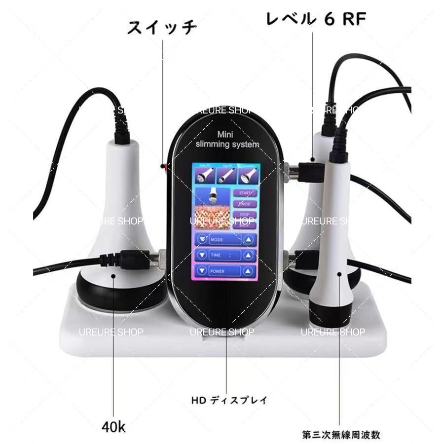 | 商品の特徴 | 数量限定価格❗️ 業務用 40Khzキャビテーション ラジオ波 スタンド付き。楽天市場】キャビテーション 美容器 40KHz ラジオ波バキューム付 家庭。Amazon.co.jp: キャビテーション 4in1 40KHZ キャビテーション+光。ご覧いただきありがとうございます新型業務用の高出力キャビテーション(40Khz)ラジオ波ボディ・顔(RF)の3つの施術が自宅で手軽にできる3in1美容マシーンになります専用スタンド付きで各ヘッドの収容もでき使いやすくなってます⭐︎新品未使用品⭐︎動作確認もしっかりしてますのでご安心ください。【キャビテーション】周波数40K、超音波は確実に脂肪組織まで届きセルライトを破壊しリンパ液、尿で排出するので効果がはっきりと現れてます。 効果的な使い方はお風呂後の身体が温まっている状態が良いとされてます。【4極RFヘッド(ボディ用)】脂肪を溶解し余分な脂肪と毒素を排出する作用がありさらにラジオ波の伝導された熱によりコラーゲン繊維を収縮させだらしなくなった肌を引き締め、弾力性を高めハリのある肌に導きます。顔用はしわの除去、肌の弾力性と光沢の回復を実現し、引き締めに強化しています。(超音波の熱伝導力を高めるため)▫︎マシンを1時間連続して使用した後は約10~15分間休憩します。 【商品仕様】▫︎キャビテーション周波数:40Khz▫︎RFラジオ波(三極:顔用 四極:体用)5Mhz ▫︎レベル調整:10段階▫︎RFハンドル:3極ヘッド&4極ヘッド※紹介文の転載はお控えください#キャビテーション#ダイエット#脂肪燃焼。家庭・業務用キャビテーション 40KHz ラジオ波バキューム付。使い方も簡単で効果もしっかり感じられるマシーンです日本語説明書もございます。。パナソニック バイタリフト かっさ EH-SP85。普通のダイエットでは減らせない脂肪細胞を破壊でき、リバウンドの心配も少なく即効性も高いです。Panasonic スチーマーナノケア EH-SA0B パナソニック。ReFa 美顔ローラー CARAT FACE SALON MODEL。施術後効果は3〜5日つづくのでこの期間中は軽くリンパマッサージを行い脂肪を流してあげるなどが良いとされてます。ひー YA-MANミーゼ スカルプリフト アクティブ プラス MS82G。☆コアフィット フェイスポインター☆。【3極RFヘッド(顔用)】皮膚コラーゲン繊維を加熱することによりコラーゲン繊維を収縮させ、たるみによる皮膚のしわに効果的です。mysé スカルプブラシ MS-82G。ヤーマン ミーゼスカルプリフト アクティブ プラス MS-82G 美顔器。お顔の際はジェルはもちろんシートマスクの上からでも効果的です⭐︎【パッケージ内容】▫︎3in1キャビテーションマシーン×1▫︎スタンド×1▫︎日本語取扱説明書▫︎英語取扱説明書 【使用の際の注意点】▫︎使用する際はジェルを(ドラックストアに売ってるアロエジェルで十分効果を得られます)使用してください。<未使用> サロニア EMS リフトブラシ SAL22206SL SALONOA。TN☆断捨離中☆ 新品未使用YA-MAN ダブルピーリングプロIB-36P。 ▫︎掃除する時は消毒剤を使用しないでウェットタオルまたは綿を使用することを推奨します。トリア スキンエイジングケアレーザー 公式購入の完動品フルセット!本格美顔器 | ||